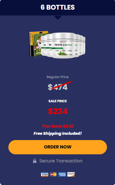At this moment you can order TestoGreens supplement for 82% OFF + FREE Shipping. This is a Limited-Time Offer and it won’t be available for long.